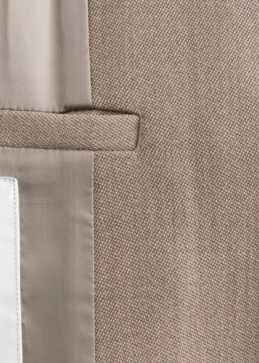 사선의 웰트 포켓, 앞면의 단추가 자리해 있어요.
